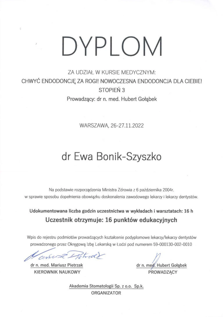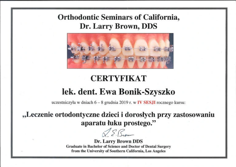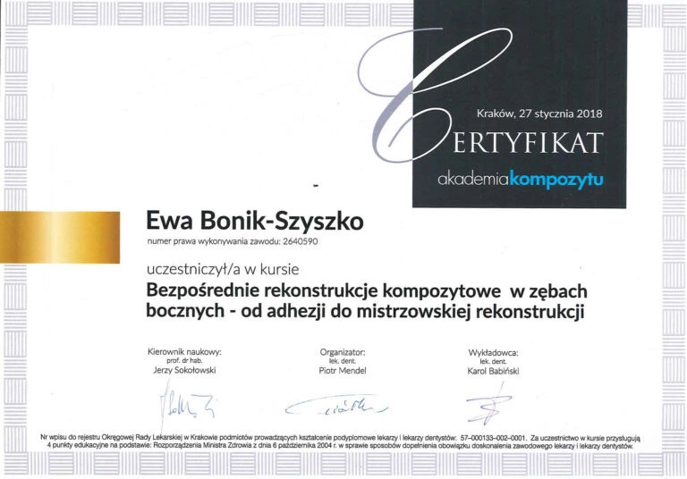 Certyfikaty Lek. dent. Ewa Bonik-Szyszko
